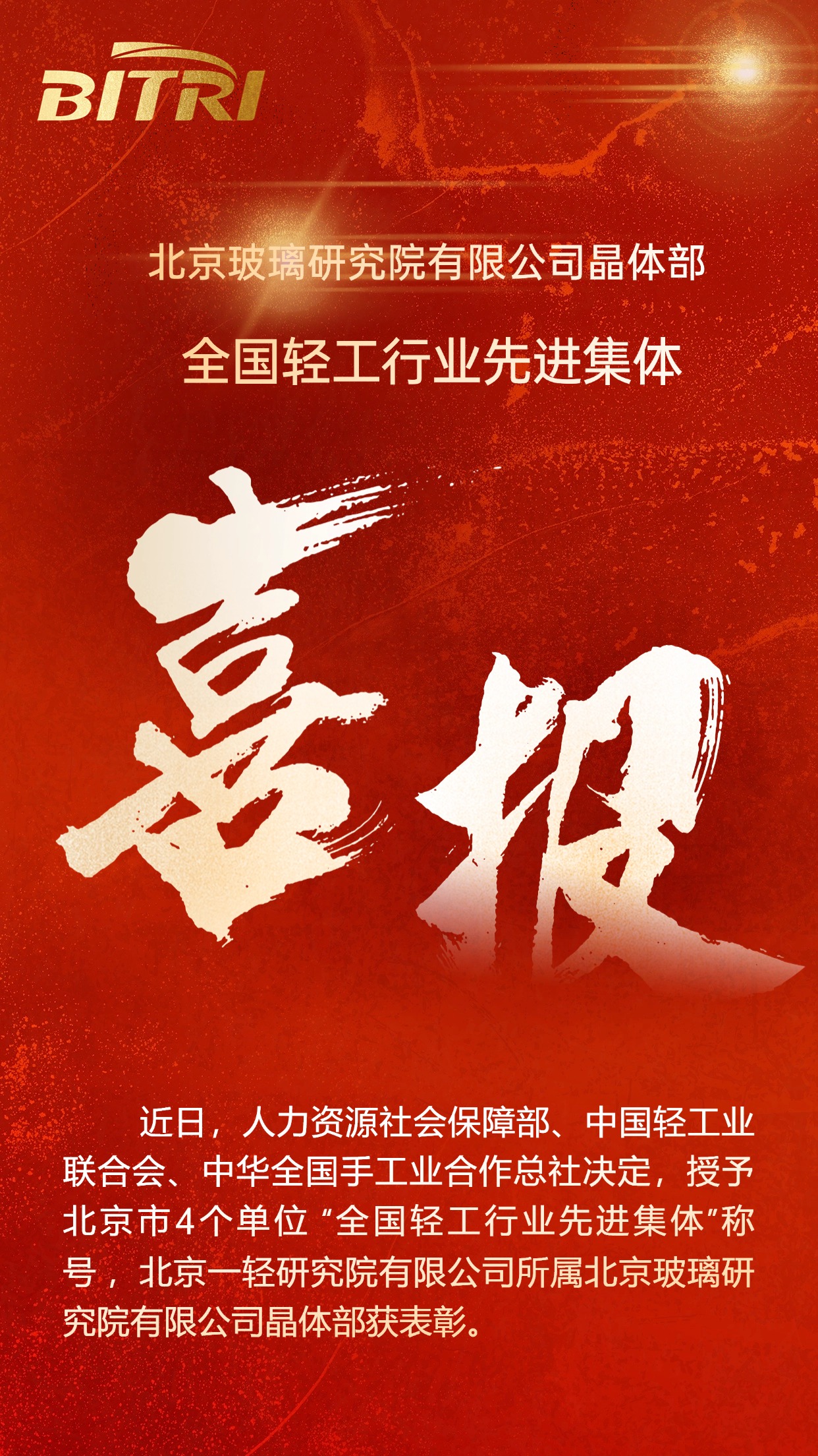 玻璃院晶体部荣获全国轻工行业先进集体称号