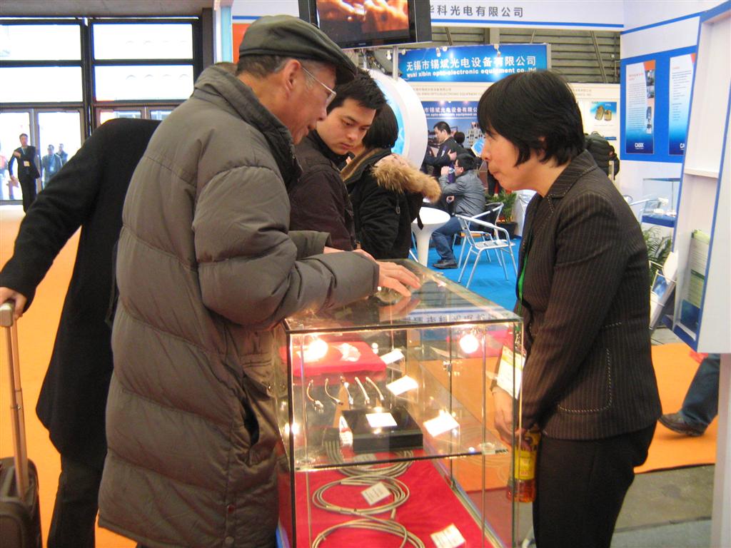 此次展会,北玻院展台设计大气、稳重。展品有氟化钙晶体、氟化钡晶体、玻璃光纤、石英光纤、光纤内窥镜、玻璃密封插座以及紫外滤光片等,以及新产品管道机器人、光纤测温仪等也在此次展会亮相,吸引了众多参展商及参展观众前来交流洽谈。展会期间,北玻人积极向观众宣传我院产品,在交流中了解其技术需求。